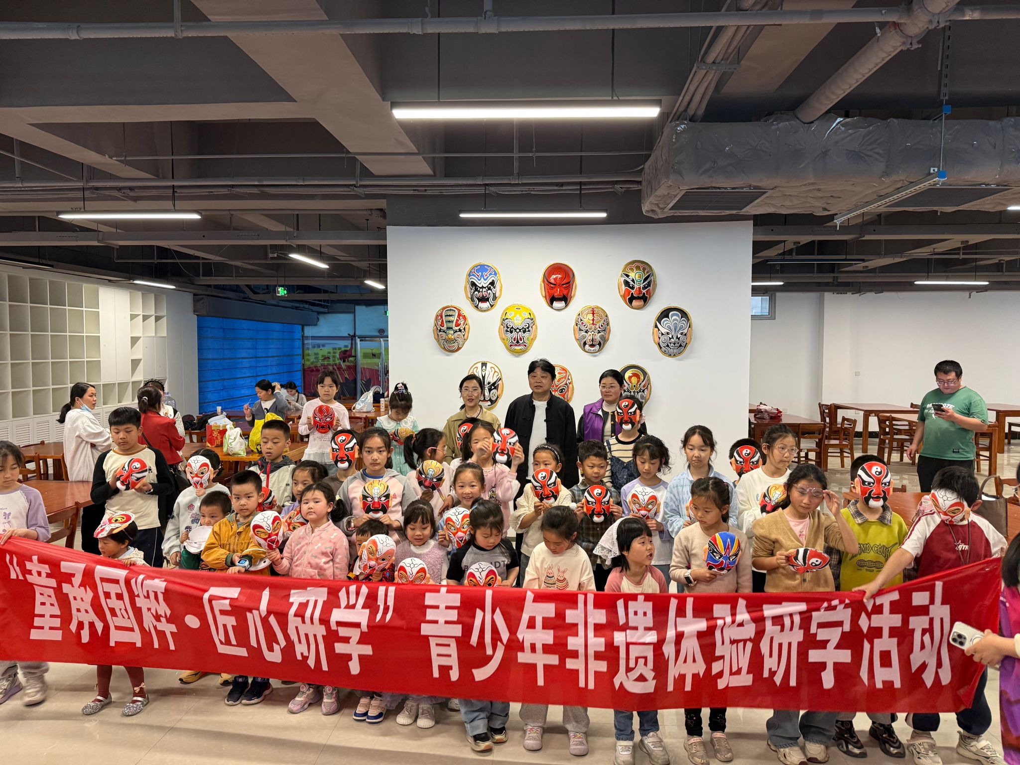 实践环节结束后,我校图书馆为每位参与青少年颁发“非遗传承小匠人”社会实践奖状及非遗主题书签,以此肯定孩子们的参与和付出,鼓励他们传承非遗、弘扬国粹。孩子们佩戴着自己亲手绘制的脸谱,模仿京剧角色的经典动作,脸上洋溢着自豪与喜悦的笑容。快门声响起,一张张鲜活的笑脸与色彩斑斓的脸谱被定格,为此次非遗研学之旅画上了圆满的句号。
