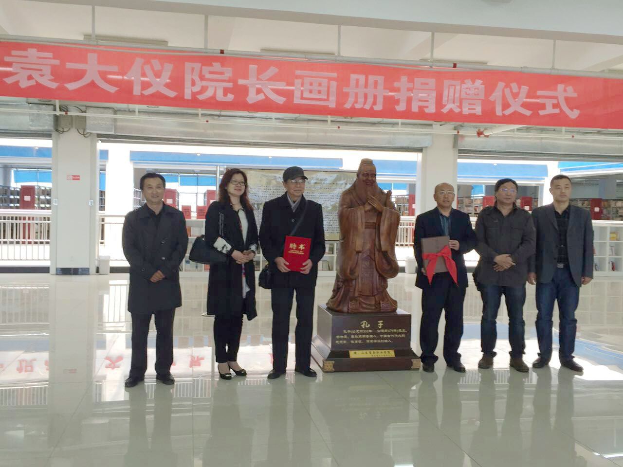 在世界读书日来临之际,作为我校第七届大学生读书文化节的一项重要活动,4月24日上午,校图书馆举行著名书画大师袁大仪院长画册捐赠仪式。原烟台书画院院长袁大仪、学院副院长陶传蔚、图书馆馆长李颖、团委副书记时登华等出席捐赠仪式。