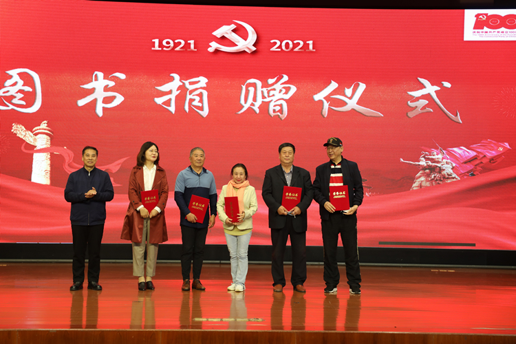开幕式上,副院长陶传蔚发表热情洋溢的致辞。他表示今年是中国共产党建党100周年,希望广大师生能够借助此次读书文化节,学好党史这门必修课,高举红色文化的火炬,传承红色基因的内核,让红色精神往深里走、往心里走、往实里走。从红色经典书籍中汲取知识、增长智慧、砥砺前行。随后,图书馆馆长李颖详细介绍本届读书节的精彩看点及主要活动内容。活动现场,嘉宾学者们捐赠了自己编写的一系列图书,副院长王伟存代表学校接受赠书,并向几位作家颁发了收藏证书。