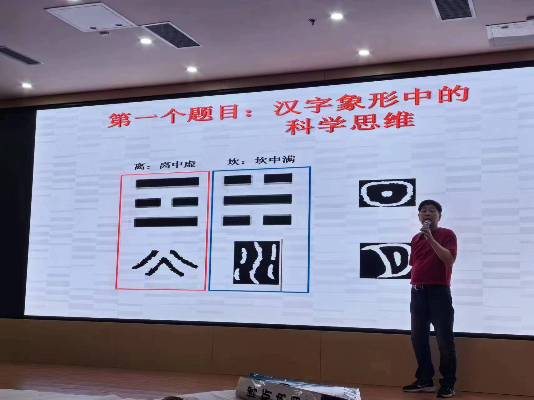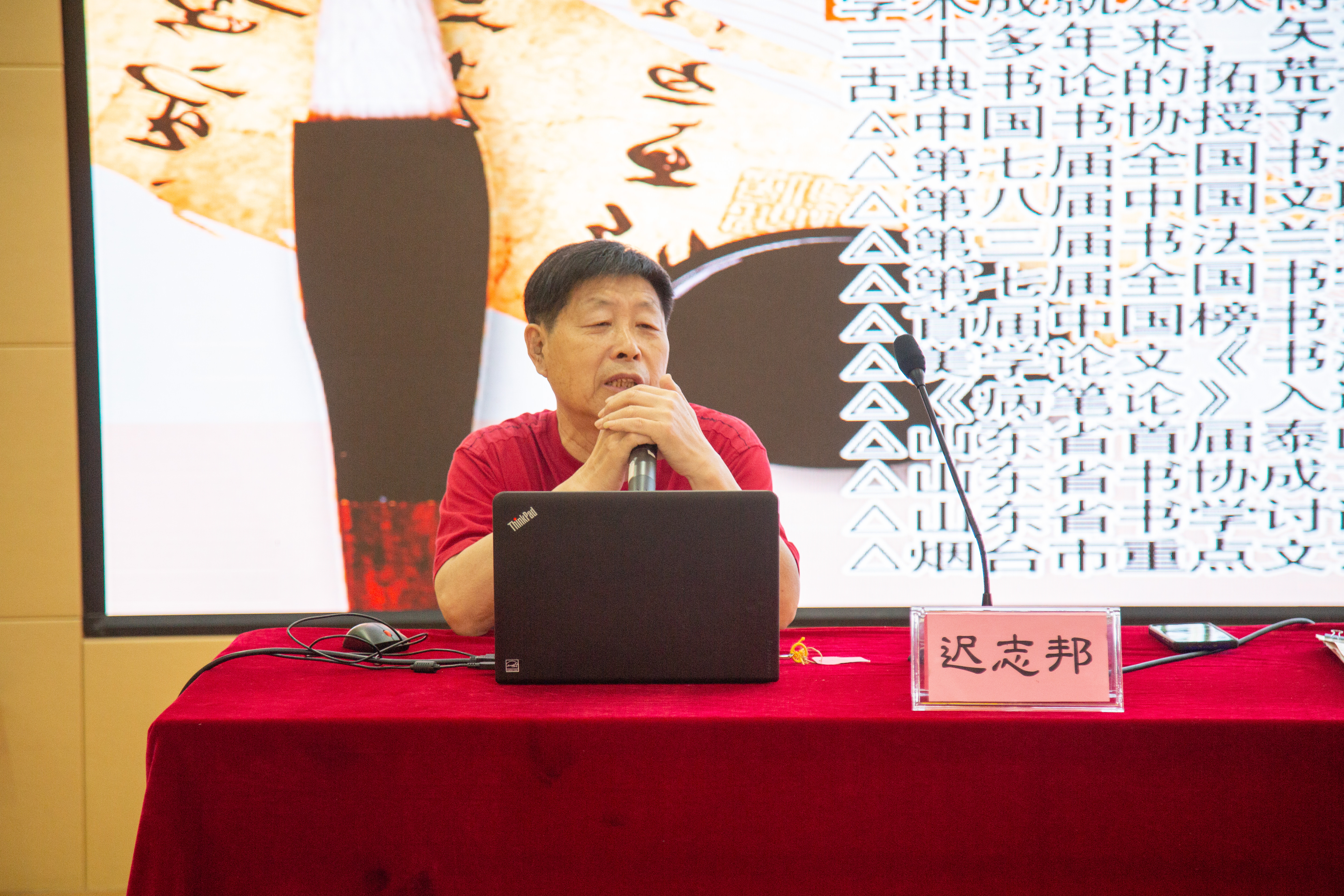 分享会上迟志邦老师从汉字象形中的科学思维,汉字书写的美丑、优劣之分,书法的力感之美以及书法的造型原则等方面,通过现场书写演示深入浅出地讲授了书法美学理论。他讲到,书法中蕴含着哲学理论,是写道理、演阴阳、求中和的艺术,书法应在象、数、理的对应中寻求适度之美,他现场分析了中庸美学理论,从更精微的层面上剖析书法艺术特质,寻绎其形质生成与自然之象的对应规律,为书法的批评与创作提供新的理论视角,让师生们直观且清楚地明白了书法艺术创作的“所以然”。